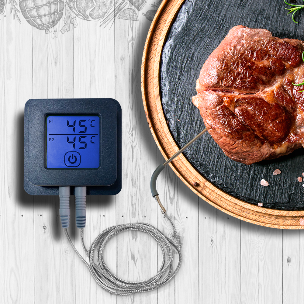 Termómetro Bluetooth parrillero, ¡más moderno que huaso con celular nuevo! Controla la temperatura de tus asados sin despegarte del vinito. ¡Pa' que el asado salga justo en su punto y nadie quede reclamando!
